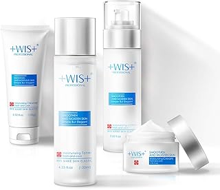 WIS Ensemble de soins de la peau hydratants, Ensemble de soins de la peau avec nettoyant pour le visage, toner, lotion, crème nettoyante Cadeau de Noël pour les femmes Kit de soins de la peau anti-âge