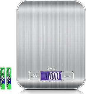 AMIR Balance de Cuisine Electronique 5 kg, Balances Numériques, Balances électroniques, Balances de Cuisine, Balances Postales avec 6 Unités de Pesée, Fonction de Tare, Affichage LCD