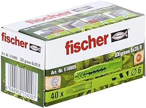 fischer 518885 Cheville Tous matériaux UX Green 6X35 avec collerette, fabriquée à Base de matières premières renouvelables/Boîte de 40 Fixation, Vert