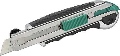 Wolfcraft 4146000 1 Cutter Lame Sécable, Largeur de Lame 18 mm, Poussoir à Cliquet, Capuchon Amovible Pour Casser La Lame en Toute Sécurité, Boîtier Robuste en Matière Plastique Argent