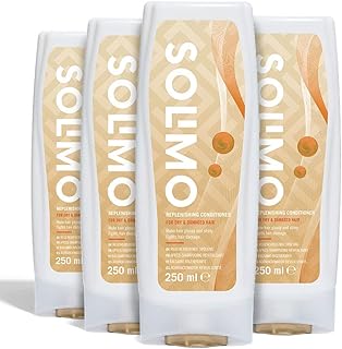 Marque Amazon - Solimo Après-shampooing revitalisant pour cheveux abîmés et secs- Lot de 4 (4 Flacons x 250ml)