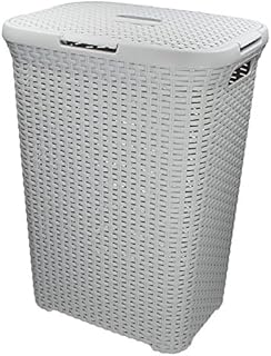 Curver Panier à linge 60 l - 45 x 34 x 62 cm - Panière à linge / corbeille à linge rectangulaire imitation rotin - Gris clair