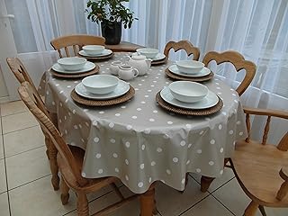 The Tablecloth Company Nappe ovale en PVC/vinyle - Motif à pois - Couleur champagne - Pour table 6 places - 140 x 200 cm
