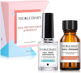 NICOLE DIARY Professional Natural Nail Prep Dehydrator & Nail Primer Set Superior Bonding Primer pour Acrylique et Gel Semi Permanent 15ml