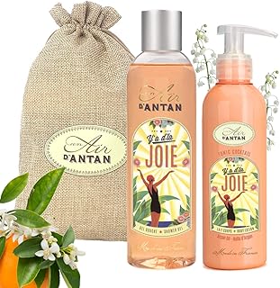 Un Air d'Antan® Coffret Beauté Femme JOIE – Lot Duo Bain Et Soin : 1 Gel Douche 250ml Et 1 Lait Corps 200ml - Parfum Fleur D'Oranger, Rose, Muguet, Idée Cadeau Femme/Cadeau Femme Original