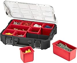 KETER – Organiseur Master Pro 16 - Boîte à Outils - Grande Caisse à Outils pour Ranger vos Outils - Support 2 Pieds - 11 Compartiments Amovibles - Loquets Métal, Caisse en Plastique – Noir/Rouge