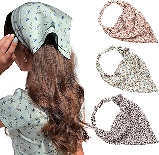 WELROG Bandeau vintage pour femme - Turban imprimé floral élastique 3 pièces Bandeaux Boho Bandeau en coton Écharpe de cheveux triangle pour femmes filles Accessoires(MIX #2)