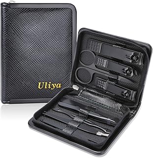 Kit Manucre Pedicure - Coupe Ongle Professionnel Coupe Cuticule Acier Inoxydable - Trousse Manucure Pedicure Set de 9pcs avec étui de voyage (noir)