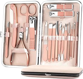 Kit Manucre Pedicure - Coupe Ongle Professionnel Coupe Cuticule Acier Inoxydable - Trousse Manucure Pedicure Set de 18pcs avec Exquis La Boîte by Keiby Citom (Or rose)