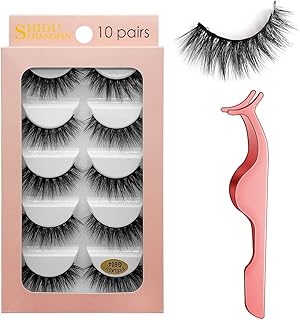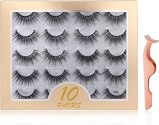 Faux cils 10 paires- Cils pour le visage réutilisables professionnels pour tous les yeux, Cils en faux vison 3D faits à la main, épais et naturels avec pince à cils de précision (Y408)