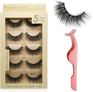 Faux Cils 5 Paires De Cils De Vison 3D Réutilisables Faits à La Main, Des Faux Cils épais Et Naturels Contiennent Des Pinces à Cils En Acier Inoxydable (Bomb)