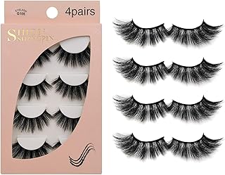 Faux Cils 4 Paires - Coupe de cils réutilisables professionnels pour le visage pour tous les yeux, Naturel épais fait à la main Cils 3D en Faux Vison pour un beau maquillage Look G106
