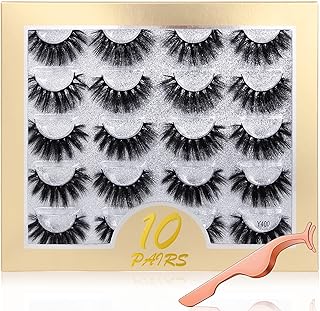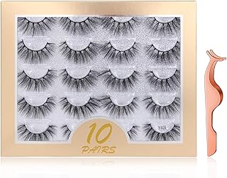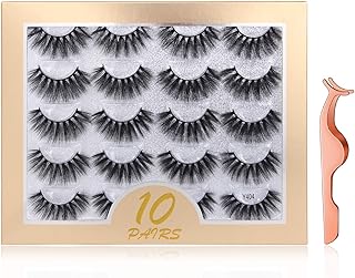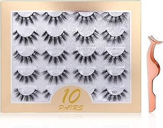 Faux cils 10 paires- Cils pour le visage réutilisables professionnels pour tous les yeux, Cils en faux vison 3D faits à la main, épais et naturels avec pince à cils de précision (Y401)